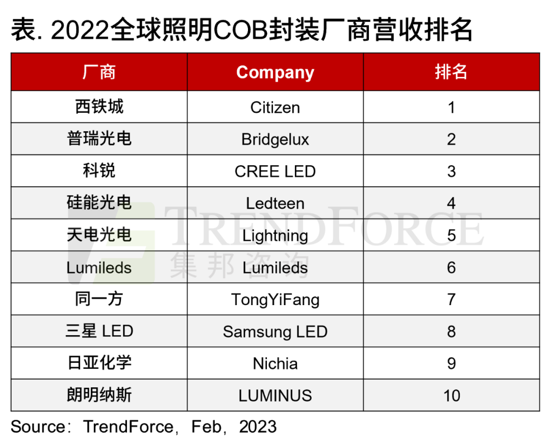 西鐵城蟬聯(lián)COB市場(chǎng)第一,國(guó)內(nèi)企業(yè)快步崛起